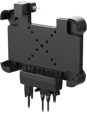 La tablette est livrée avec une dragonne pour faciliter la mobilité. Des accessoires optionnels, tels qu'une station d'accueil de bureau, une station d'accueil verrouillable pour véhicule, un dock de charge 4 slots, différentes sangles de portage et une sacoche de transport, offrent des solutions personnalisées pour répondre aux besoins spécifiques des utilisateurs.